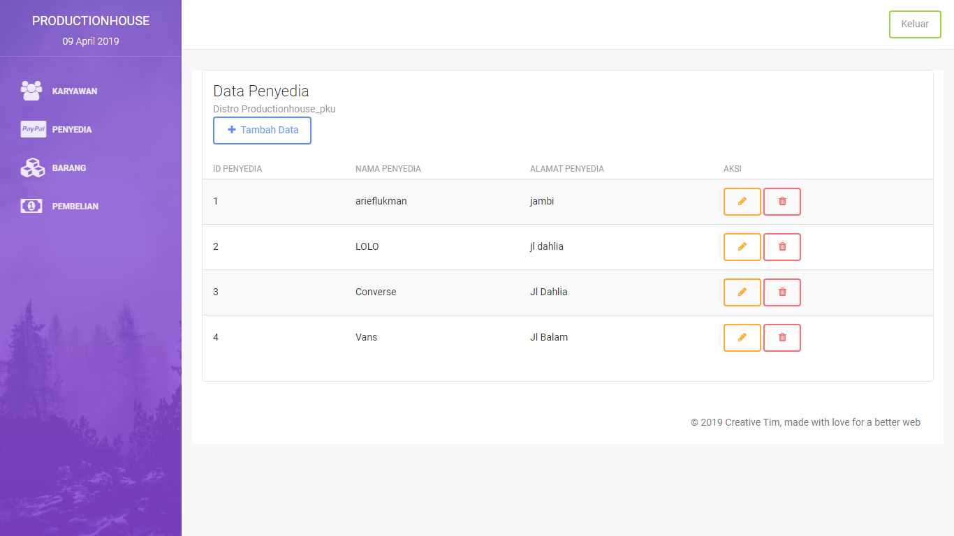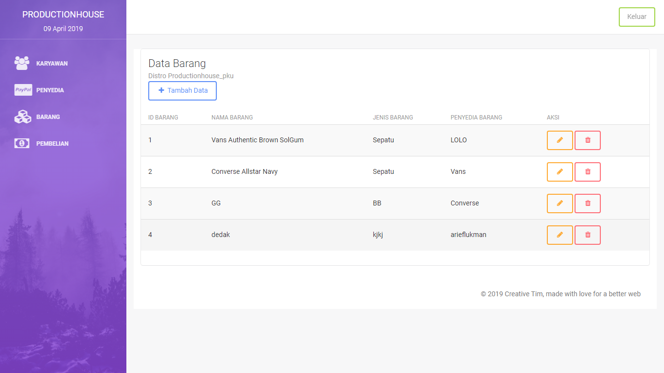 aplikasi sistem informasi data penyedia barang dan karyawan berbasis web ini siap pakai atau pun di kembangkan sesuai dengan keinginan..