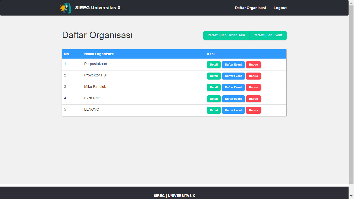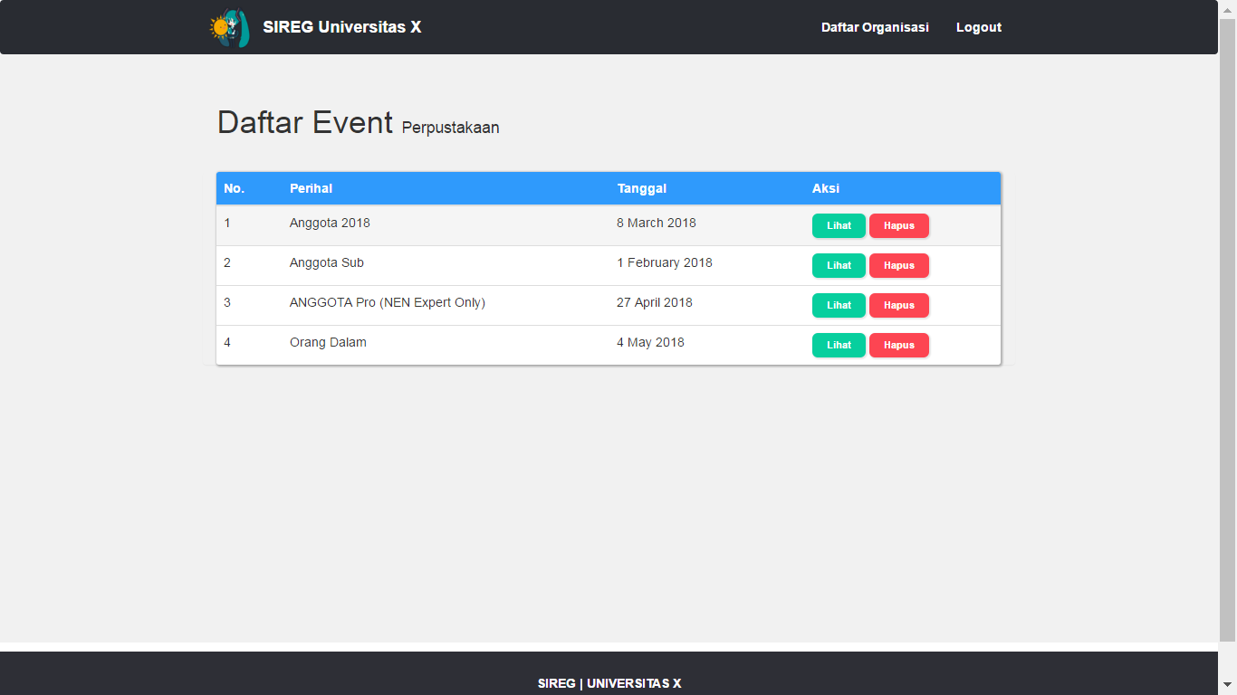 SIREG adalah platform terintegrasi yang ditujukan bagi pengelola organisasi di lingkungan Universitas X untuk mengelola pendaftaran kegiatan organisasi. SIREG menggunakan KTM berbasis NFC sehingga proses pendaftaran menjadi lebih mudah, cepat, dan akurat.