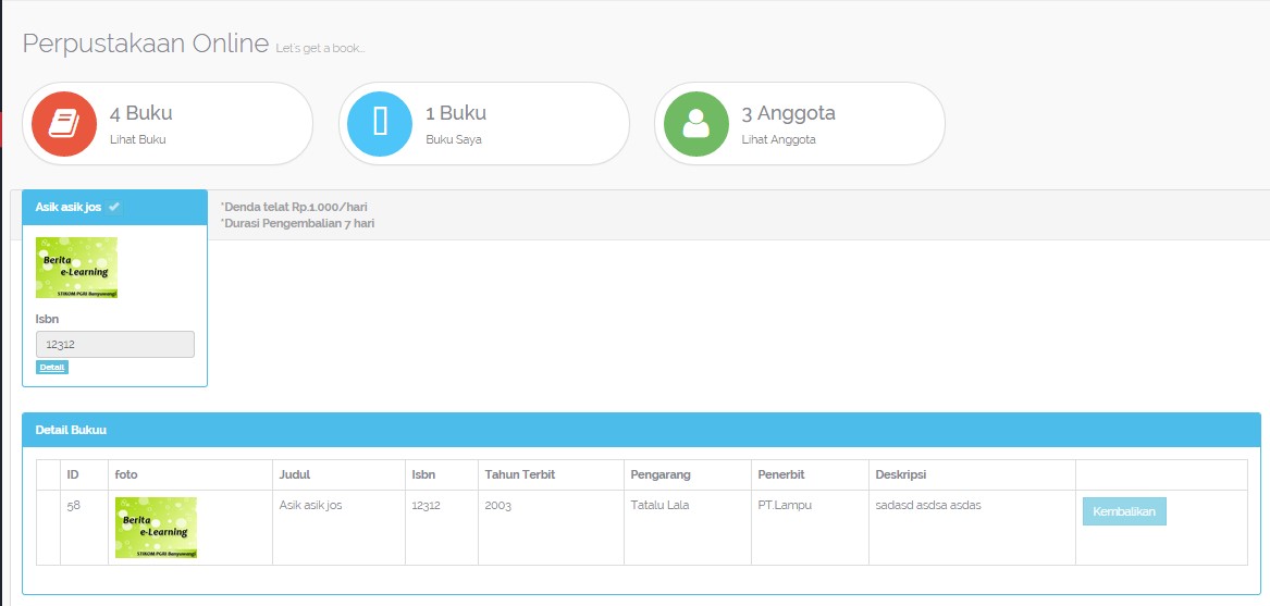 Silahkan jika berminat untuk Aplikasi Sistem Perpustakaan Gratis Berbasis Web dengan cara mendaftar menjadi member pondoksoft di sini