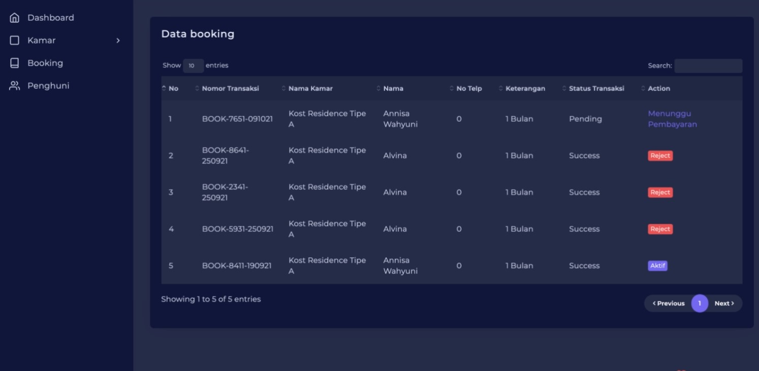 13. Sistem Pembayaran Terintegrasi: Mempermudah transaksi pembayaran kost secara online.