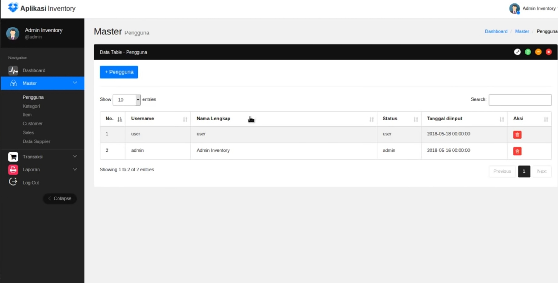 Fitur yang kedua adalah Master, di sini Anda akan mendapatkan fitur kelengkapan lainnya, mulai dari pengguna, kategori, item, customer, sales, juga data supplier.