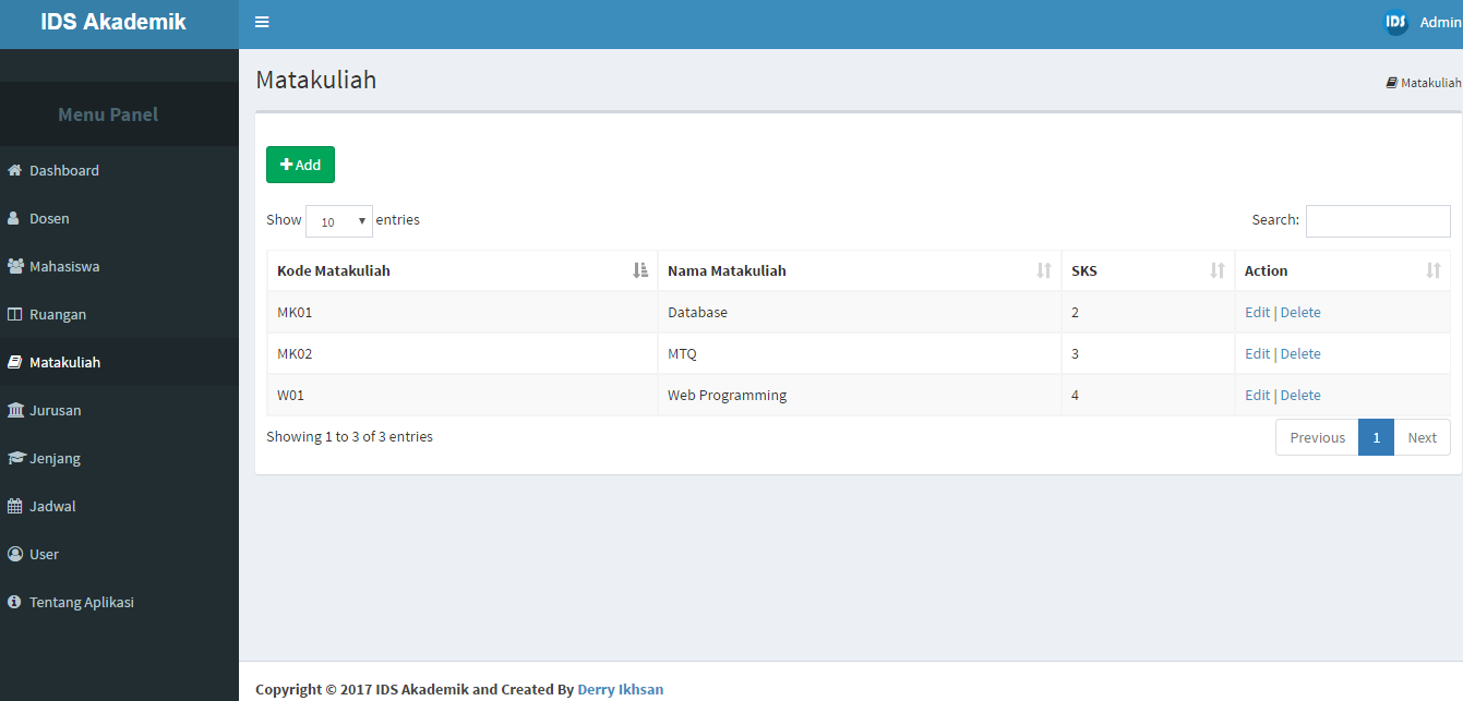 Keberadaan fitur data mata kuliah pada aplikasi ini akan membuat Anda bisa mengelola data-data mata kuliah menjadi lebih mudah. Fitur ini akan menampilkan informasi seputar kode mata kuliah dan bahkan juga nama mata kuliah dan beban sks yang dimilikinya.